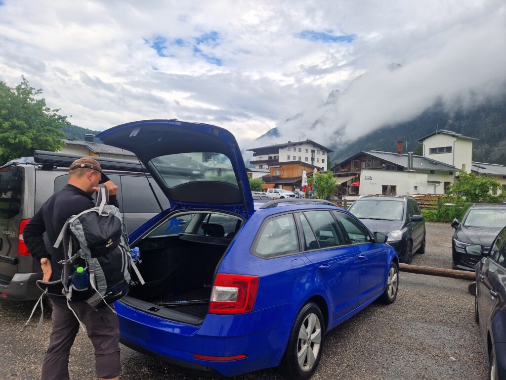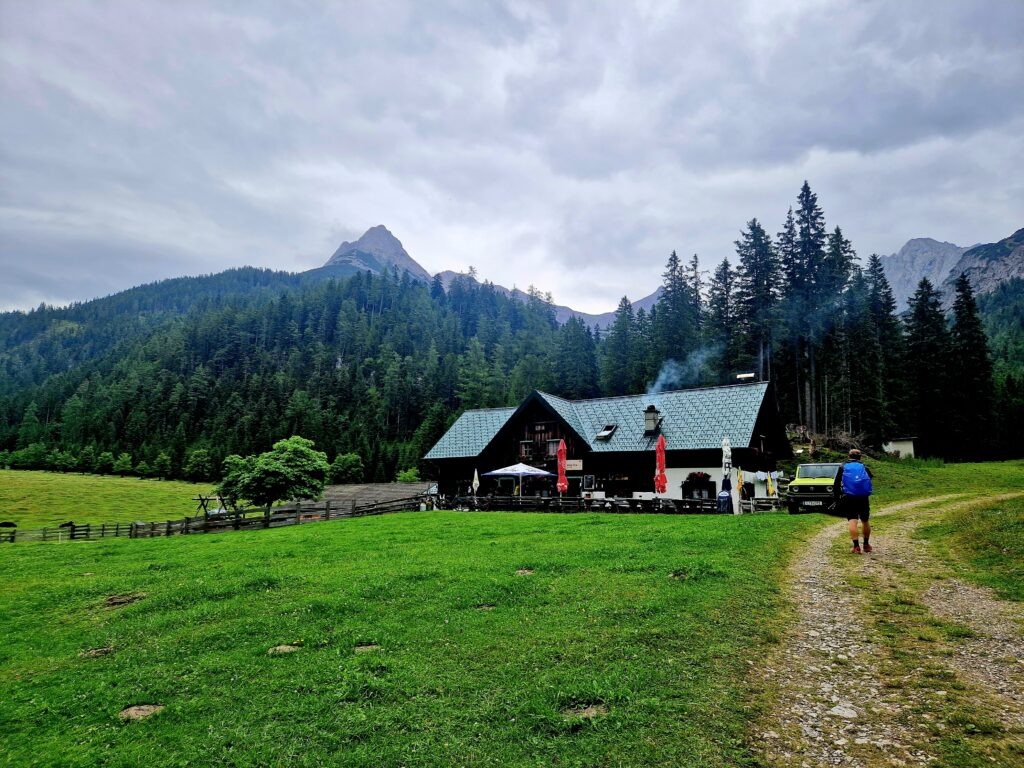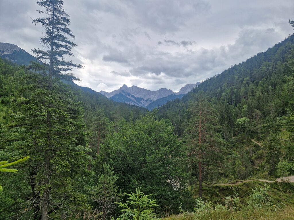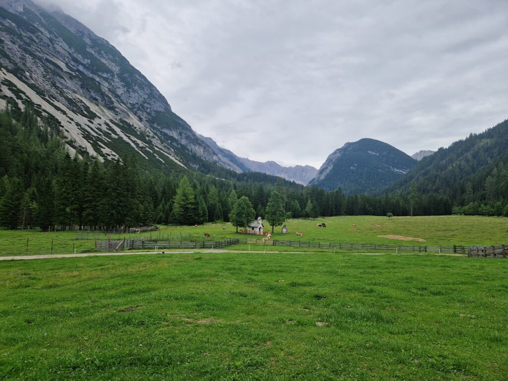 Strávíme tu asi hodinku a pak se vydáme se zpět do Scharnitz. Venku začíná pršet, překvapivě, a já už chápu, proč v každém obchůdku dole ve městě prodávají deštníky😅🌧.