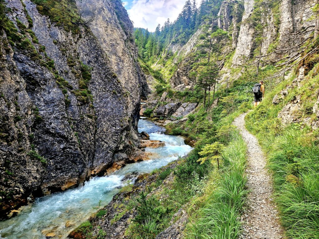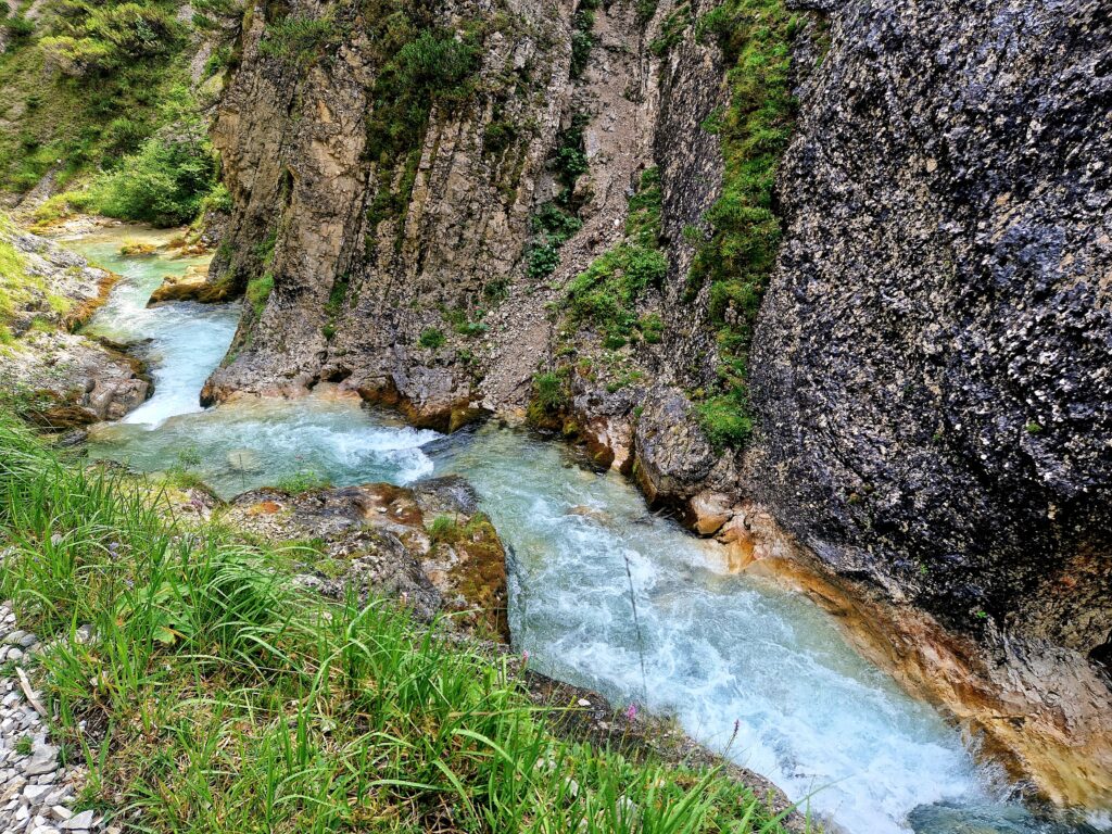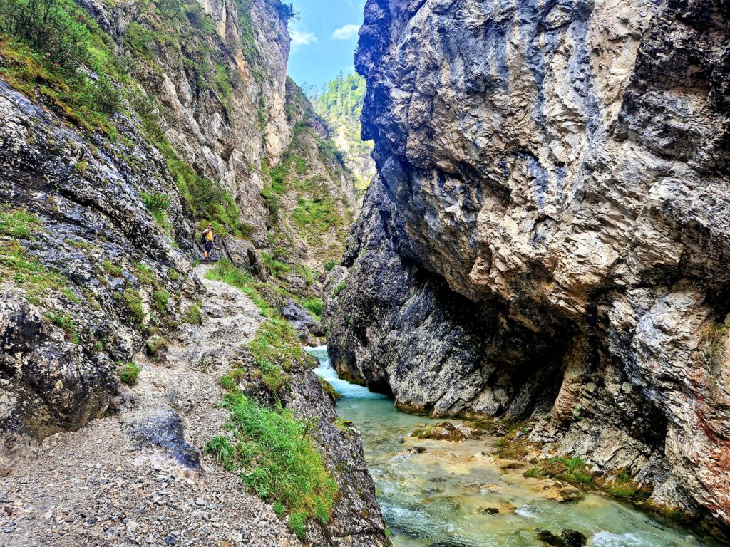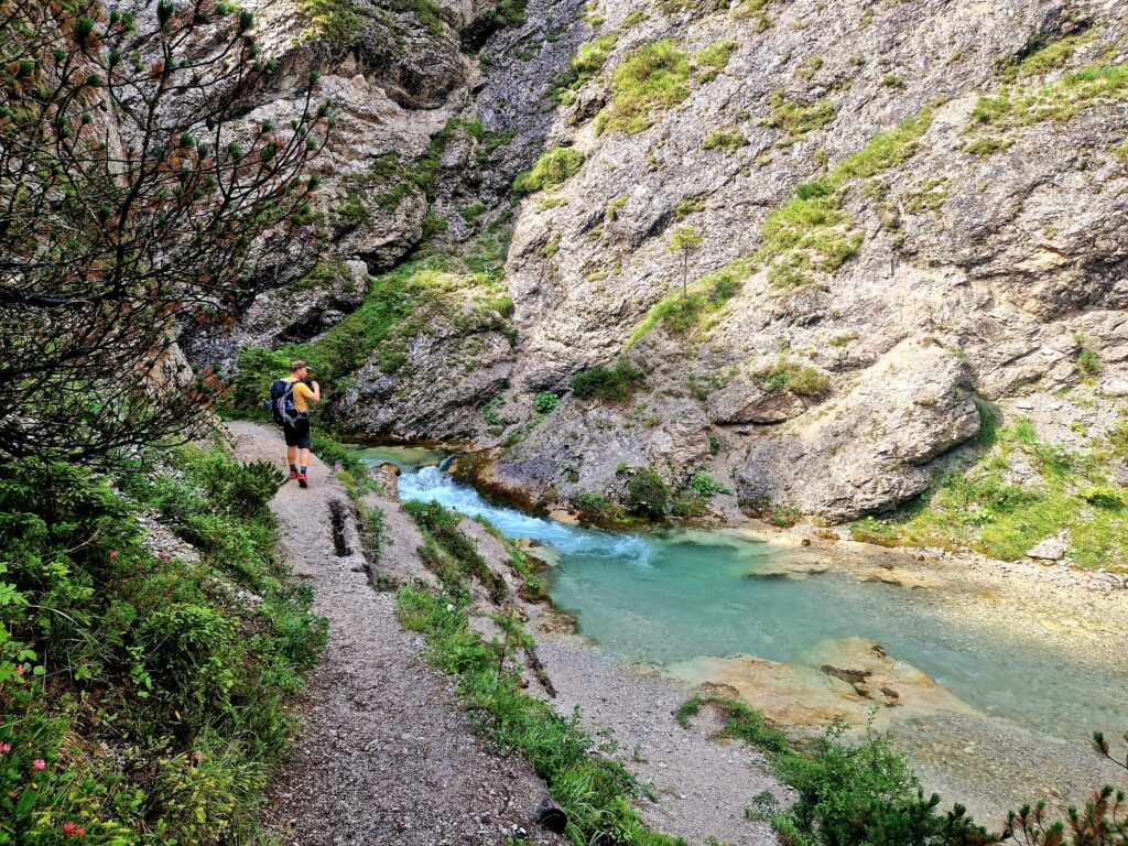 Po chvilce lehkého stoupání se nám říčka Isar ukazuje ve své blankytně modré kráse a my se těšíme do soutěsky😍: