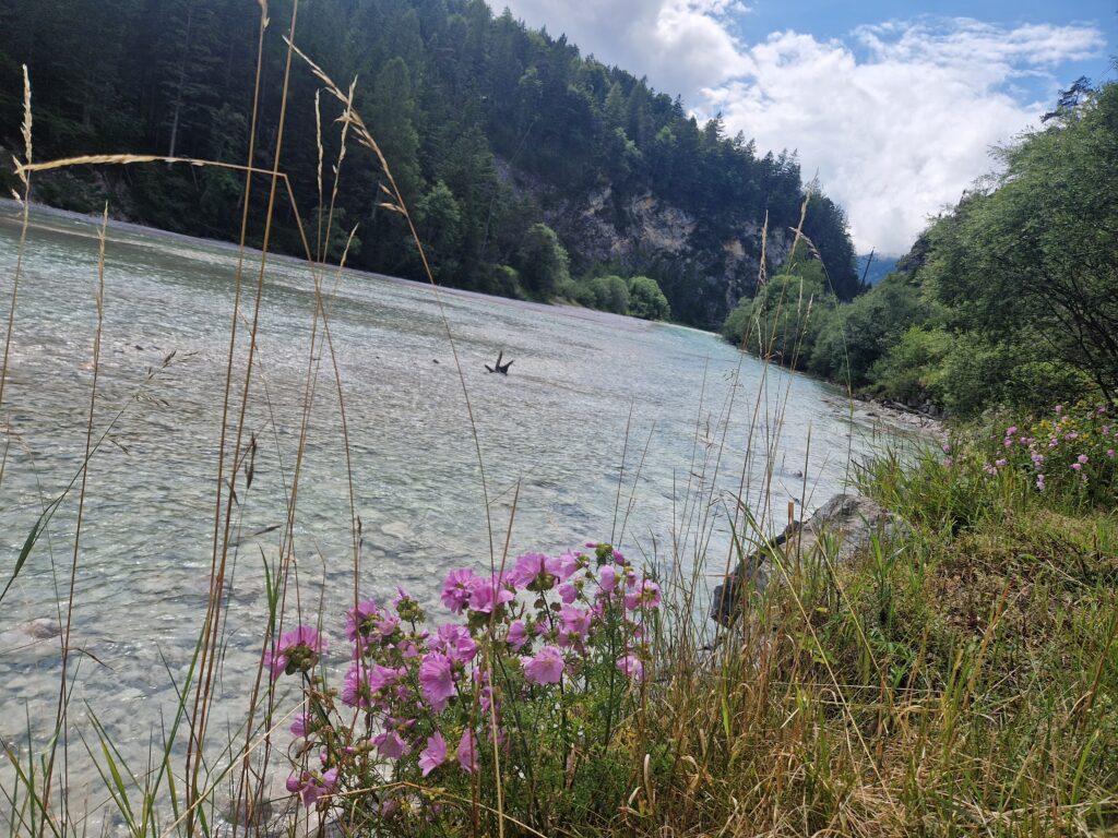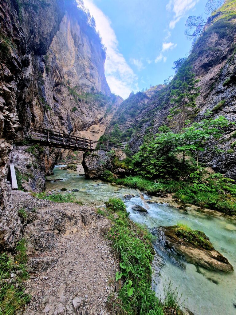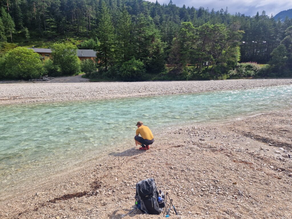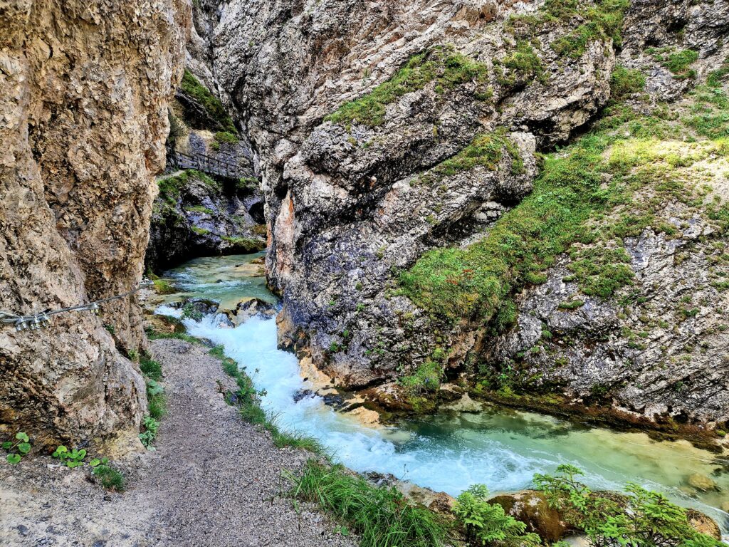 Po chvilce lehkého stoupání se nám říčka Isar ukazuje ve své blankytně modré kráse a my se těšíme do soutěsky😍: