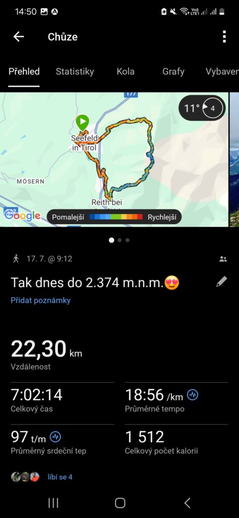 Dnešní nádherný výlet nám dal, co se týče výškových metrů, celkem zabrat😅. Nastoupáno 1.500 metrů😍😍💪: