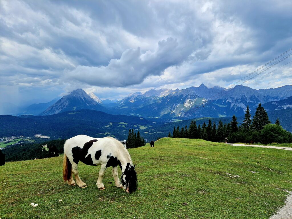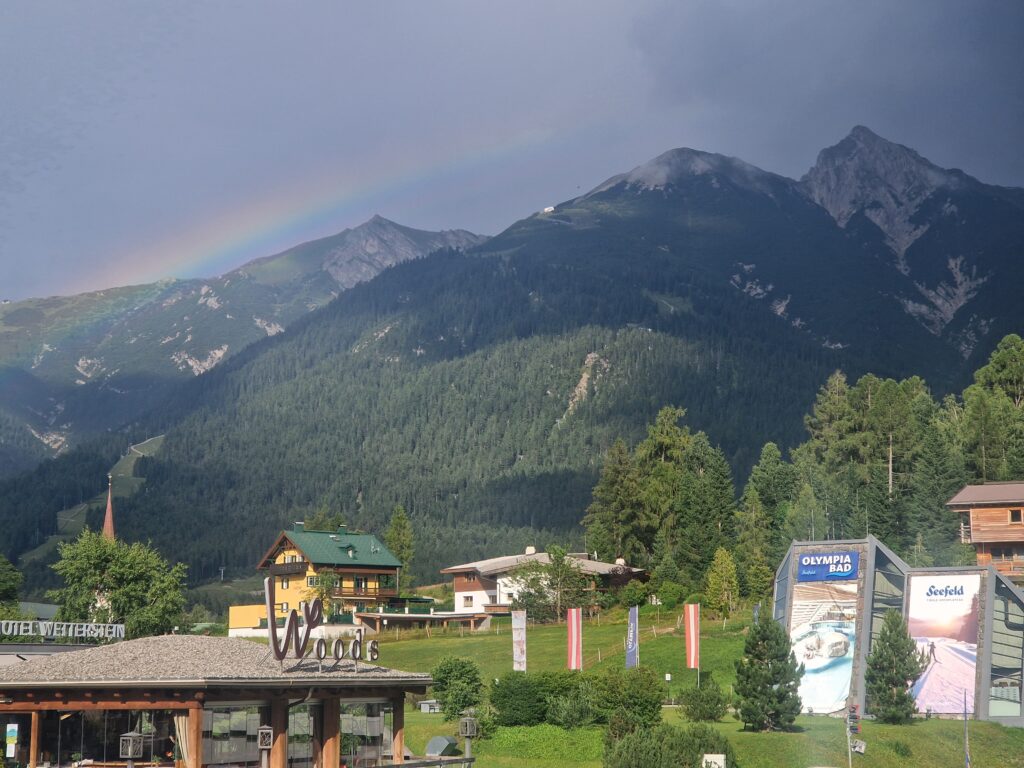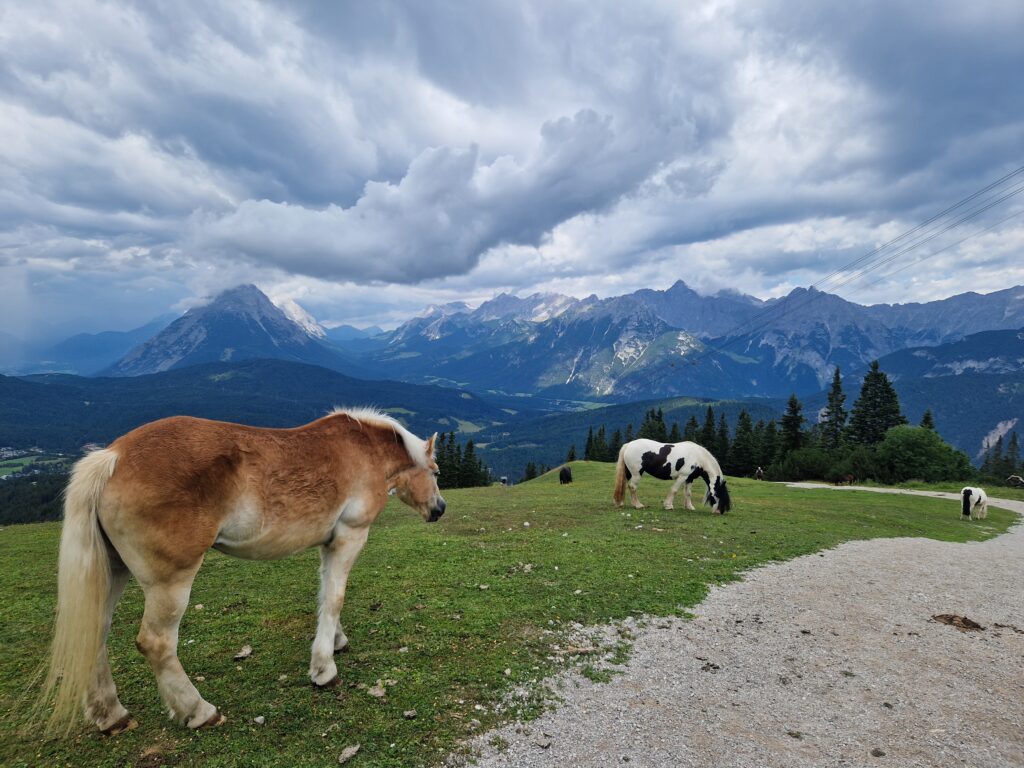 Rychle běžíme k horní stanici lanovky, kde se tísní snad všichni turisti ze Seefeldu. Děláme si poradu, co teď…Venku to vypadá na dlouho, takže se jede zpět lanovkou🫣. Hledáme paní, co prodává lístky🙏, hledáme všude, koukáme se i za roh, projdeme budovu od spoda nahoru a paní nikde🫣. Ptám se pána s pejskem, kde si můžeme koupit lístky, ten pokrčí rameny, a prej že tady ne, že jedině dole😳🤦‍♀️. No nechápeme moc, proč tu není možnost vyjít nahoru po svých a dolů lanovkou, třeba zrovna pro případ zhoršení počasí🙏. Pokud se dostaneme ve zdraví dolů, tak jim tuto možnost navrhnu, asi je to ještě nenapadlo😝. Třeba pak dostaneme věrnostní slevu na lanovku😅🙏.
