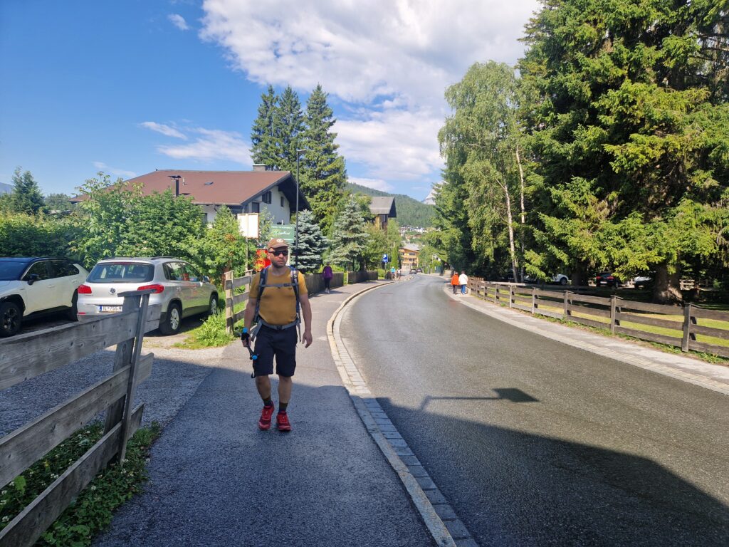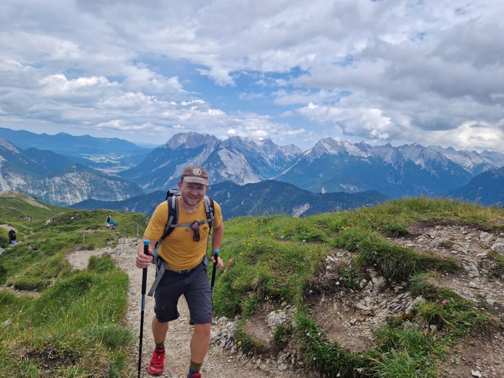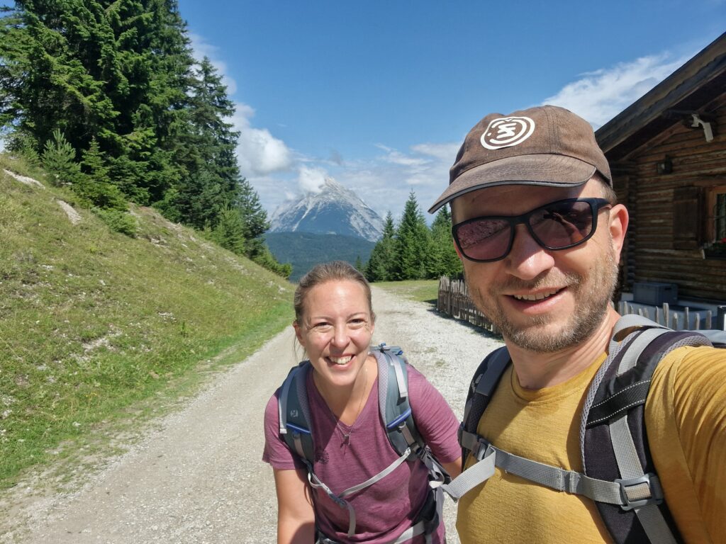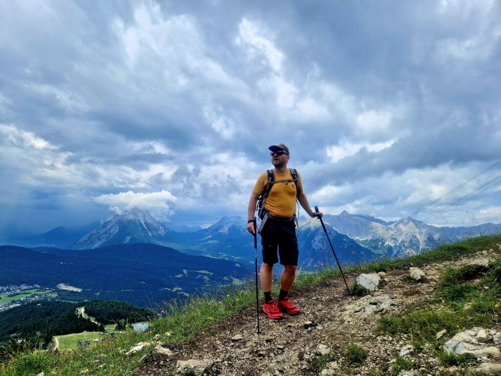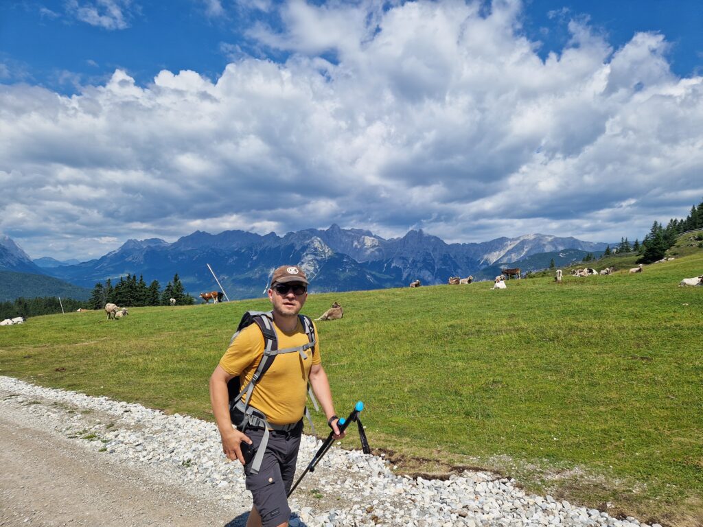 Na parkovišti u lanovky v Seefeldu se zhluboka nadechneme, zapíchneme hůlky do štěrku, a jdeme rubat mega krpál💪. Jako měli jsme poslední dobou pocit, že se nám zlepšuje fyzička, protože chodíme běhat do Krkonoš, ale po chvilce šplhání skoro kolmo, měníme náš přehnaný názor a vyhodnocujeme, že dnešní den to bude mega náročné🥵. Během chvilky jsme mokří durch, předbíhají nás turisti o pár desítek let starší, my se je snažíme dohnat, oni nám mizí v dáli, a my jsme z toho dost rozhození😳.