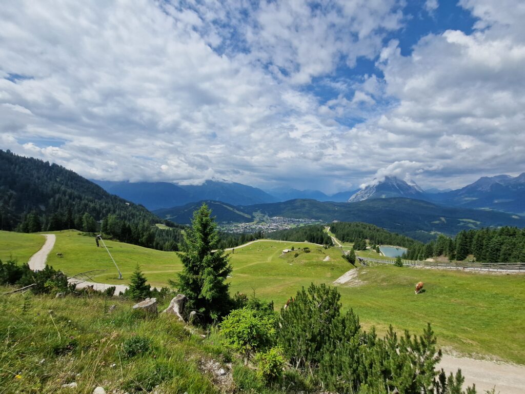 Postupně vycházíme nad Seefeld a začínají se nám ukazovat krásné výhledy😍. Začínáme smrdět, tak začínáme být i spokojení😅, tenhle smrádek známe, ten máme rádi😁: